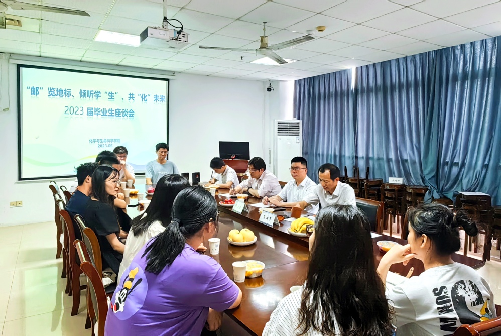 为更好地倾听毕业生心声,充分了解毕业生学习、生活、就业情况以及对学校、学院的诚恳建议,进而不断强化学院课程育人、管理育人、服务育人、就业育人的针对性与实效性,5月31日上午,88858cc永利官网在教学楼5-504(2)会议室召开“‘邮’览地标、倾听学‘生’、共‘化’未来”2023届毕业生座谈会。副院长赖文勇,副院长苏邵,毕业班辅导员,毕业生代表等参加会议。会议由院党总支副书记、副院长张建平主持。