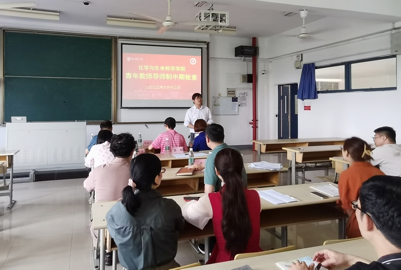 会议由苏邵副院长主持,参加会议的还有化生院参培青年教师及部分导师。首先,苏院长对各位专家出席本次中期检查表达了诚挚的欢迎和感谢,并详细介绍了本次中期检查的流程和具体要求。随后,参培青年教师围绕慕课学习、教学培训、听课试讲、辅导答疑等方面,对自己半年来培训任务的完成情况、收获心得和后续的努力方向进行了详细汇报。其中,两名申请提前授课的青年教师还在中期检查现场讲授了一个完整的教学节段。