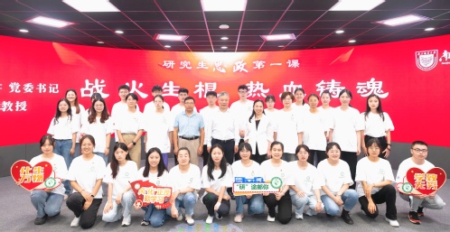 郭书记号召全体研究生赓续红色基因,传承南邮精神,做到坚持和传承热爱祖国、矢志报国的家国情怀,坚持和传承艰苦奋斗、刻苦学习的优良学风,坚持和传承密切联系群众、服务群众的优良作风。郭书记勉励研究生同学们坚定理想信念,厚植爱党、爱国、爱校情怀,勇担使命、主动创新,在中国式现代化进程中成就青春梦想、贡献南邮力量。