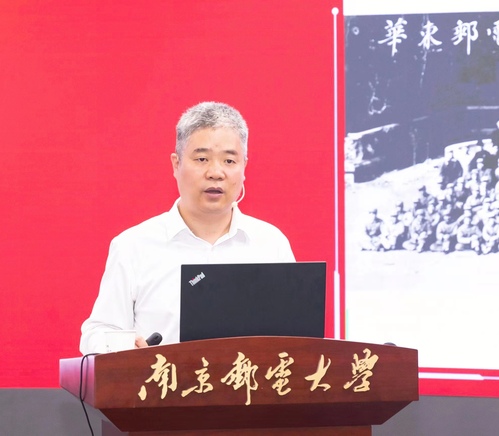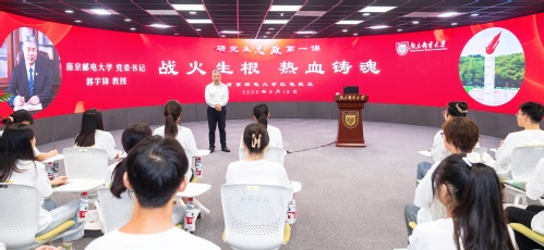 郭书记授课的主题是《战火生根热血铸魂——南京邮电大学红色校史》。郭书记围绕南邮红色校史,讲述了“学史铸魂:学习南邮校史的重要意义”“南邮发源:抗日战争时期的战邮干训班”“数易校名:在解放战争中辗转壮大”“定址南京:结束8年的战争岁月办学历史”“赓续精神:继承和发扬南邮的红色基因”等五个部分的内容,上了一堂生动的思政第一课。