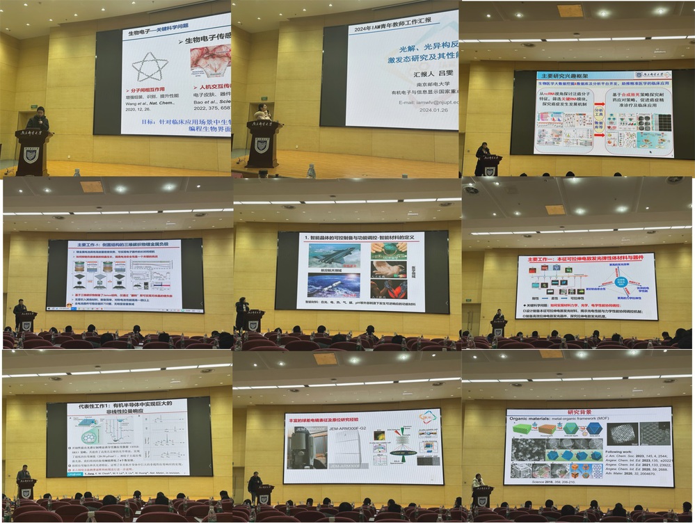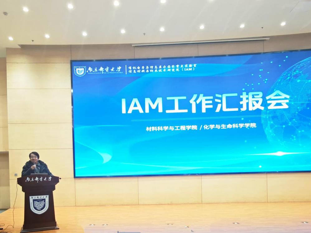为集中展示南京邮电大学IAM团队近期科研工作成果,加强团队内科研交流与合作,1月26日,IAM教师工作汇报会在图书馆四楼报告厅顺利召开。会议由材料科学与工程学院院长范曲立教授和88858cc永利官网常务副院长赖文勇教授主持,43位科研人员依次进行工作汇报,中国科学院院士、IAM团队创始人、带头人黄维教授线下参会听取汇报并进行点评指导,相关学院主要领导出席会议。
