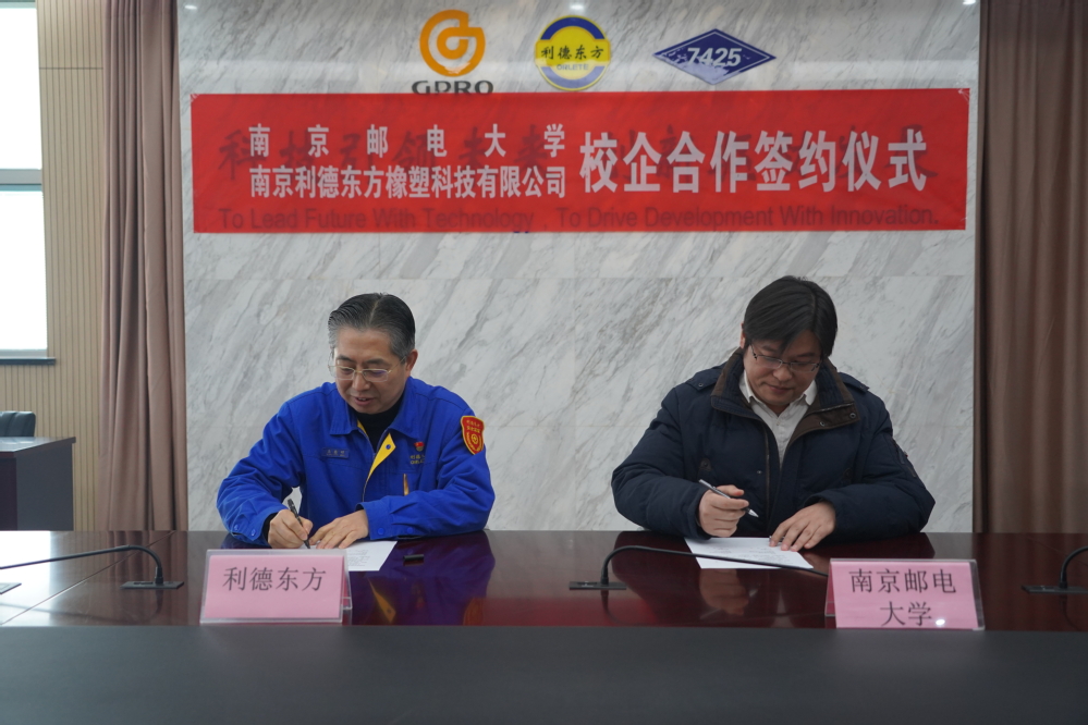 为进一步落实学校访企拓岗促就业专项行动,2024年1月10日上午,88858cc永利官网赴南京利德东方橡塑科技有限公司(简称利德东方)洽谈交流,双方基于优势互补的原则签署共建实习实践基地协议并举行揭牌仪式。利德东方总经理王春明、副总经理王亮燕,88858cc永利官网党总支副书记、副院长张建平、副院长苏邵及双方有关部门负责人共同出席仪式。