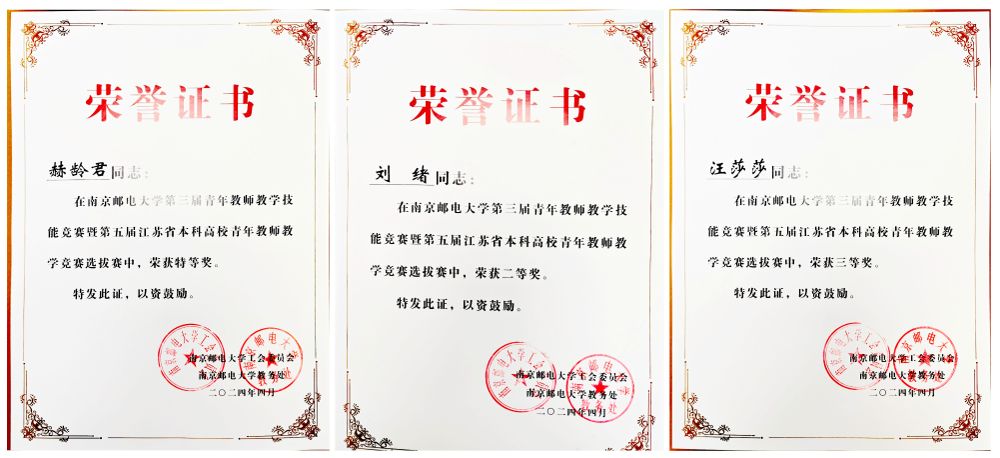 2024年4月7日,由工会、教务处(教师教学发展中心)联合主办的第三届青年教师教学技能竞赛暨第五届江苏省本科高校青年教师教学竞赛选拔赛落幕。经过激烈角逐,88858cc永利官网赫龄君老师、刘绪老师和汪莎莎老师分别获得特等奖、二等奖和三等奖。