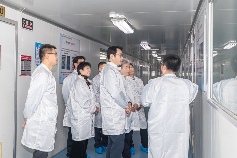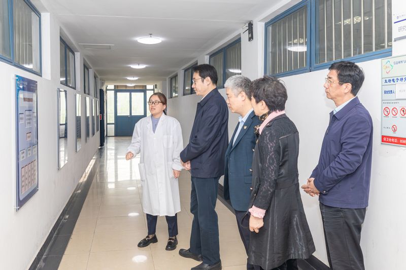 在有机电子与信息显示国家重点实验室和生物智能材料与诊疗技术重点实验室(国家重点实验室培育建设点),赵岩副省长一行认真听取了相关负责人对实验室历史沿革、主要研究方向、关键核心技术和标志性成果等方面的情况汇报。赵岩副省长走进实验室,实地调研科研平台运行与成果产出情况,了解科研团队在生物智能材料、生物传感器开发与应用、心脑血管疾病精准诊疗关键技术等方面的最新研究进展。他与团队成员亲切交流,并鼓励相关科研人员大力弘扬科学家精神,瞄准科技前沿和关键领域,加强基础研究和应用研究,不断提高科技成果转化和产业化水平,进一步发挥学校在服务经济社会高质量发展中的重要支撑作用。