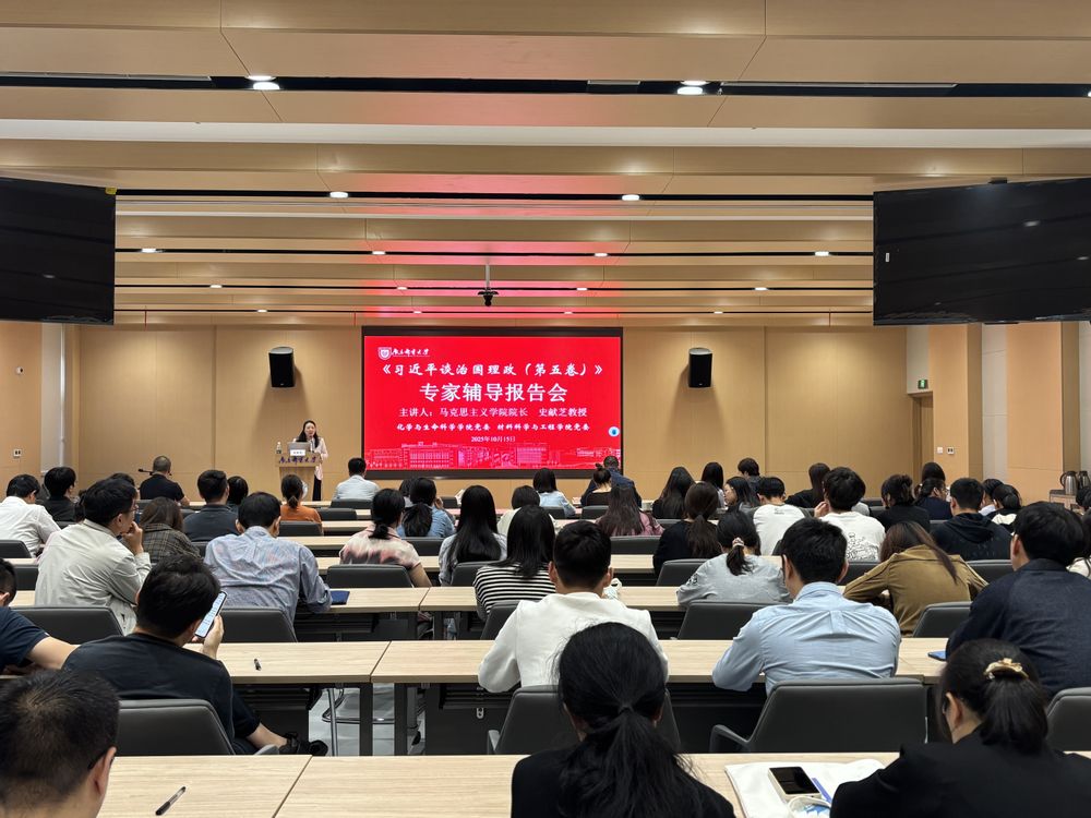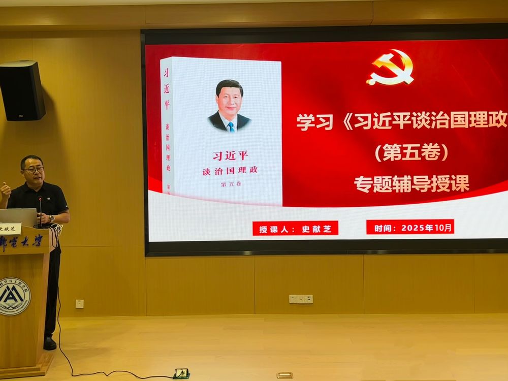 报告会上,史献芝教授以“学习《习近平谈治国理政》第五卷”为题,从“提高认识,深刻领会重大意义”“学懂弄通,准确把握核心要义”“学思践悟,确保学习走深走实”三个维度进行系统讲解,强调要将第五卷和第一卷至第四卷作为一个整体来学习,把握好学思践悟的深浅之道,要以追本溯源把书读深,以身体力行把书读浅,以融会贯通把书再读深。结合工科背景,史教授还深入阐释了著作对科研与教学的指导价值,点明其为中国式现代化推进、中华民族伟大复兴提供的方法论支撑。报告主题鲜明、内容丰富、事例生动,为参会人员深入学习《习近平谈治国理政》第五卷,深刻领悟习近平新时代中国特色社会主义思想的真理力量和实践伟力提供了有力指导。